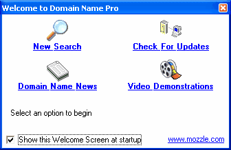 When Domain Name Pro is started the following Welcome Screen is displayed: