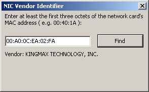 Fabricante de la Tarjeta, ingrese la direccion fisica y haga clic en Buscar. El nombre del fabricante sera mostrado.