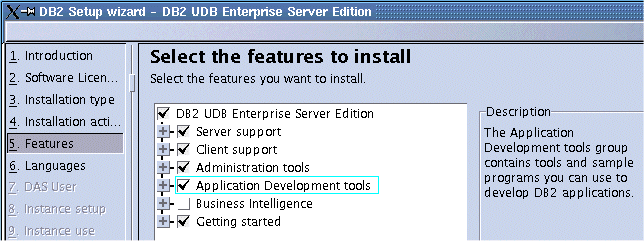Figure 4 1 DB2 custom installation with Application Development tools selected