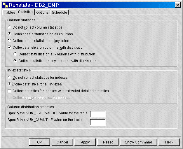 Figure 9 12 RUNSTATS command options
