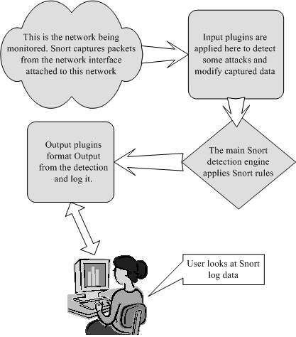 Snort detection engine and application of Snort rules. For example, a packet may be