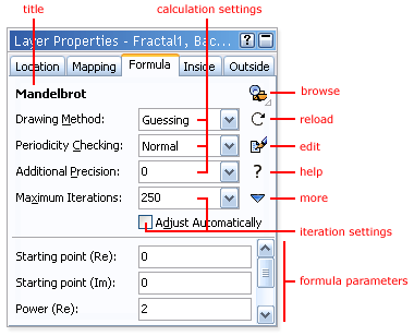 The formula parameters are additional parameters specific to the selected fractal formula.