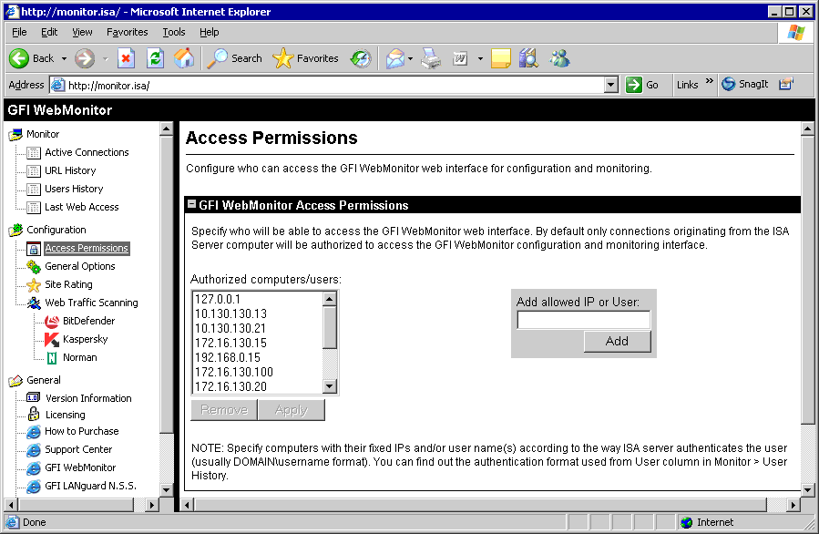 NOTE: When using IP Access Control, you must assign a fixed/static