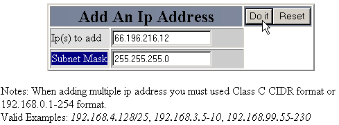 WebHost Manager enables you to add a new IP address at any time, along with the addresses required subnet