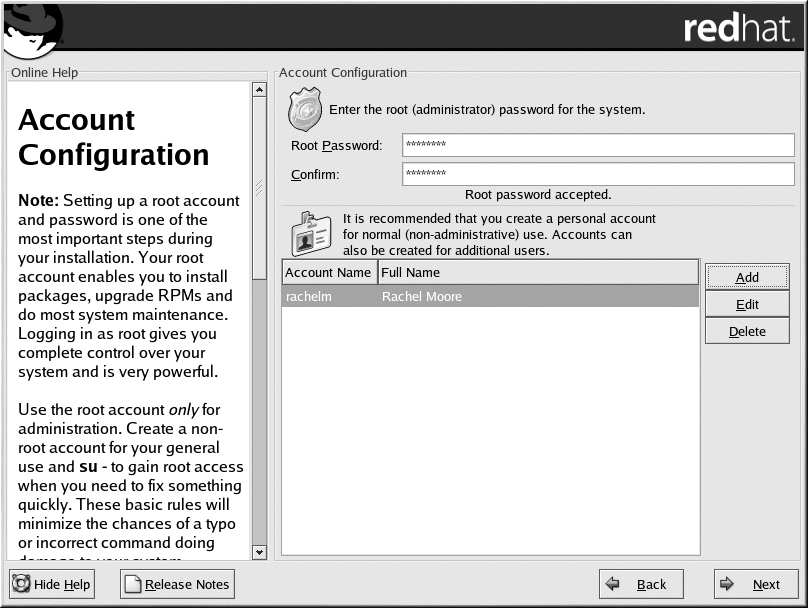 2. A root password is the administrative password for your Red Hat Linux system. You should only log in as